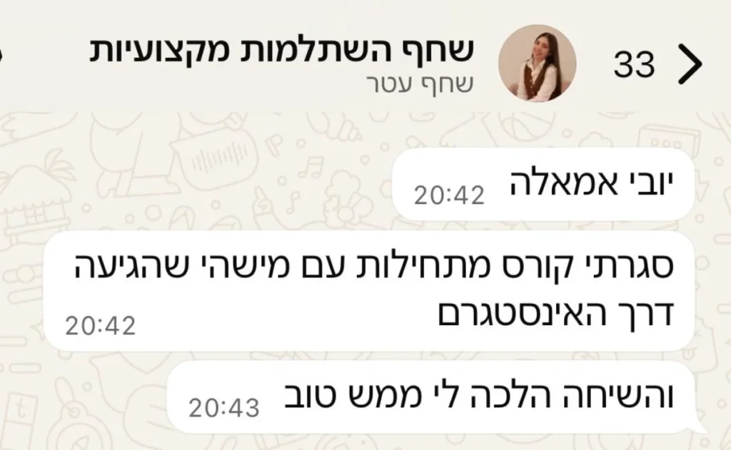 בסוף השיעור, התלמידות יקבלו את הסרטונים ערוכים ומוכנים לפרסום. הן יוכלו להעלות אותם באופן מיידי לעמודים שלהן, ויהיו מוכנות להתחיל לגייס תלמידות ולבנות את הנוכחות הדיגיטלית שלהן בצורה מקצועית.