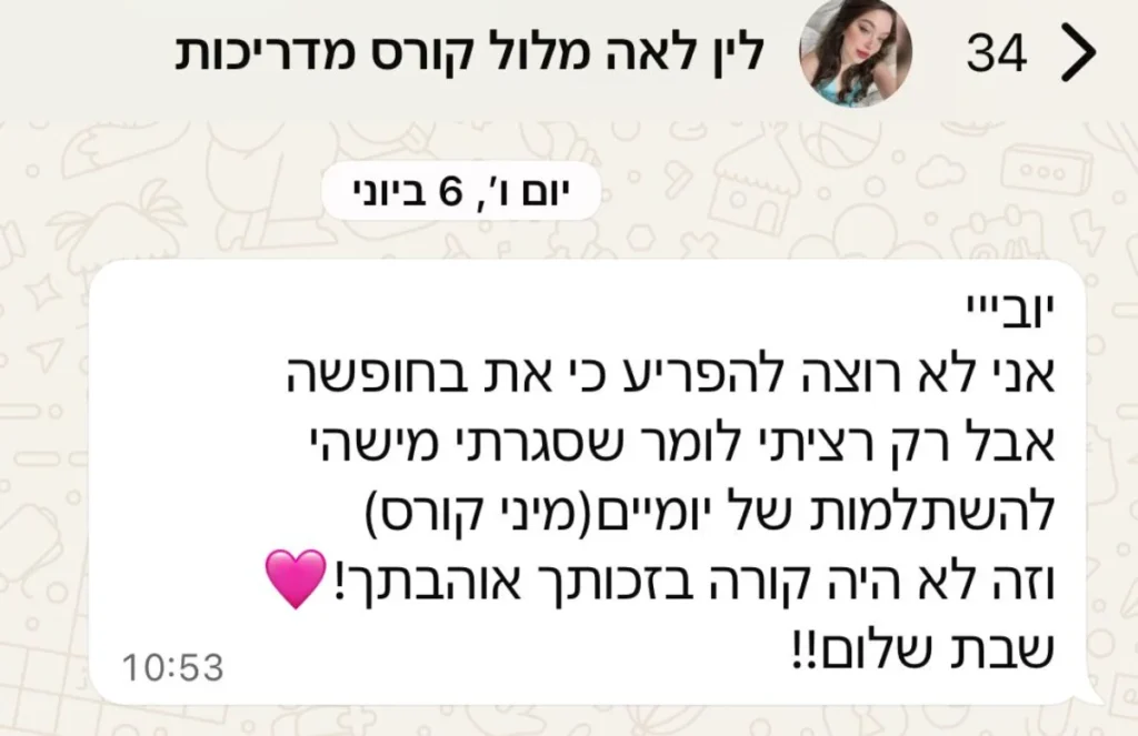 קורס זה כולל ידע תיאורטי ומעשי, טכניקות עדכניות וכלים מקצועיים שיעזרו לך להצליח בעולם ההדרכה ולהוביל תלמידות להישגים מרשימים.